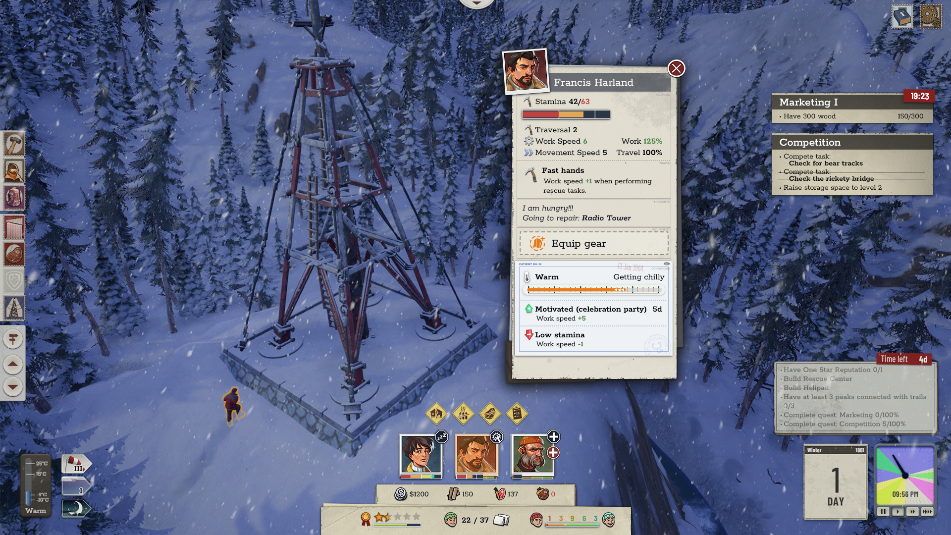 Trailblazing Management: Map out custom trails through icy peaks and scenic vistas, adjust for guest skill levels, upgrade hazards, and rescue anyone who gets in over their skis.